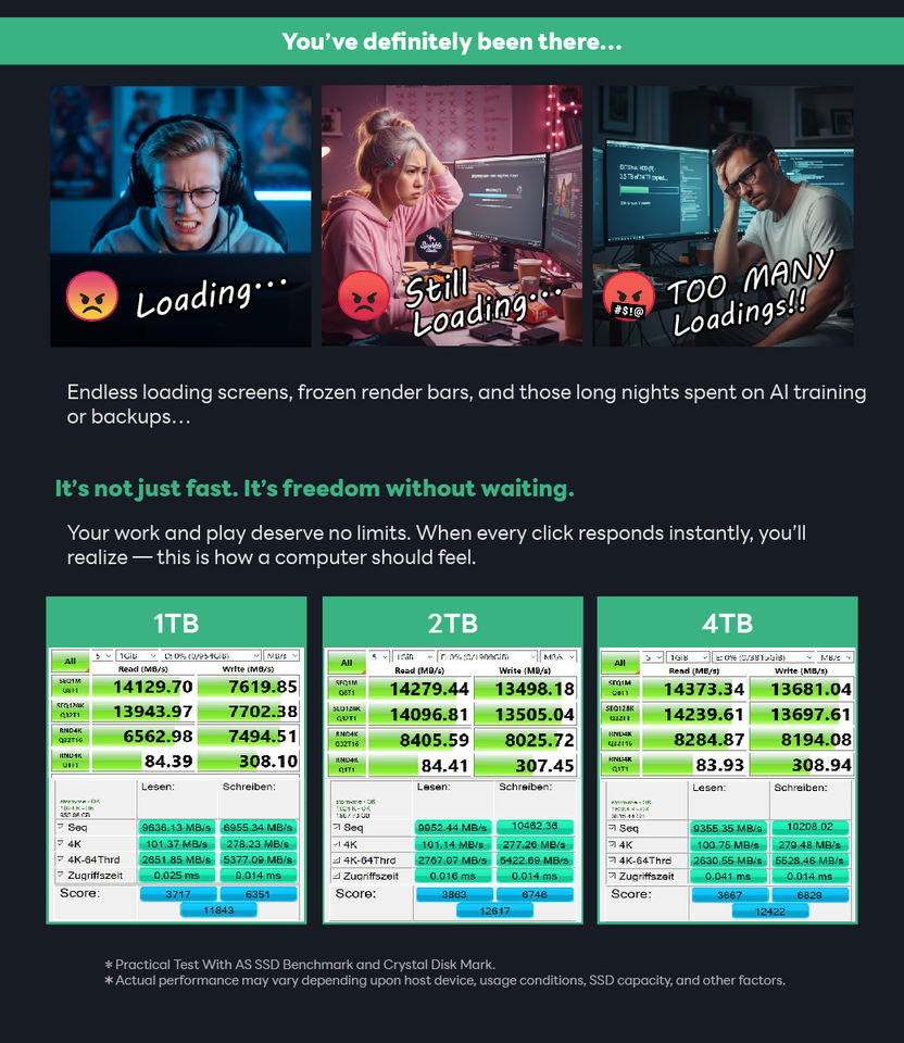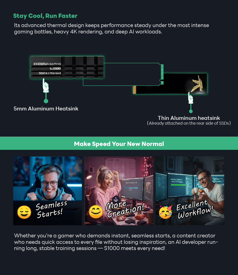 ภายใน SSD NVMe M.2 4TB Gen5x4 PCIe พร้อมฮีทซิงค์สำหรับเกมเวิร์กสเตชัน Desktop-14000MB/S อ่าน/13000เมกะไบต์/วินาทีเขียน