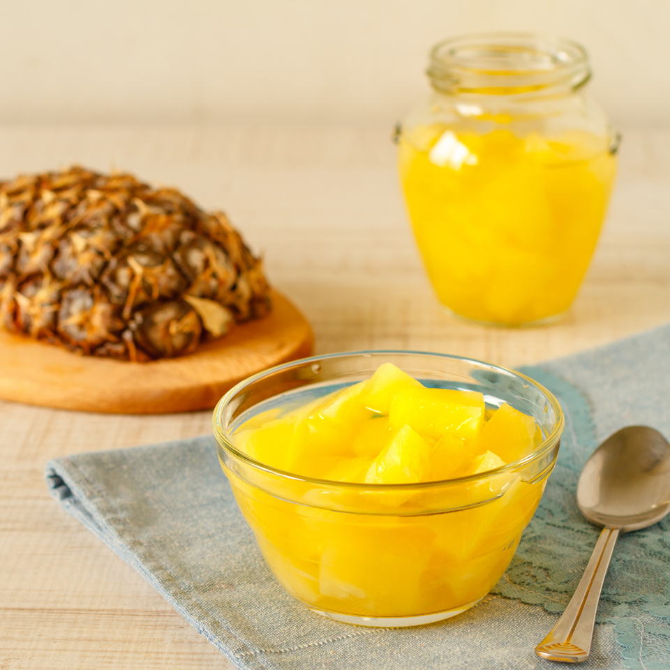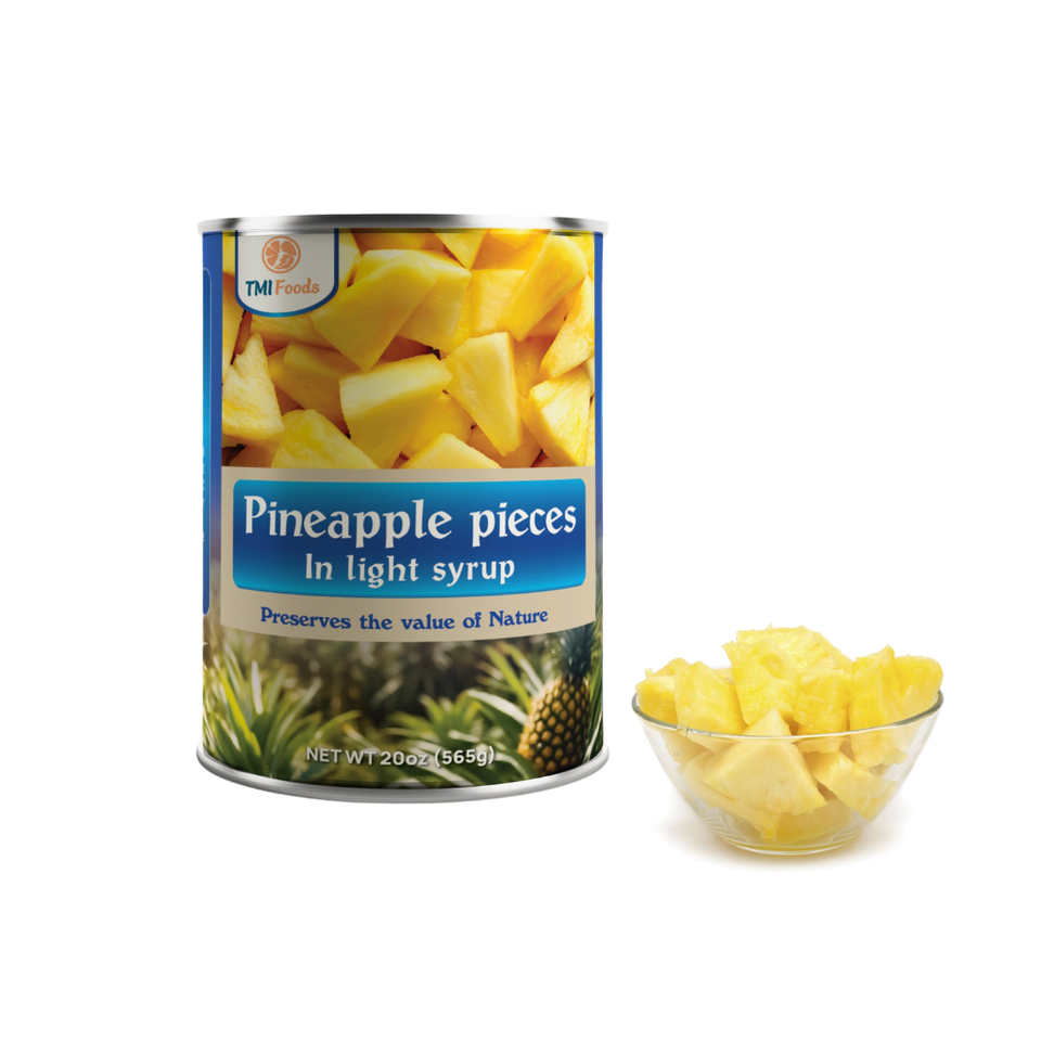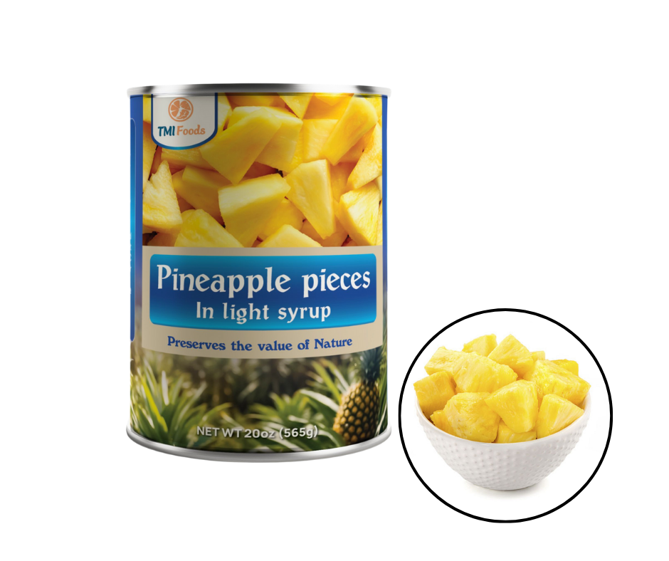 ผลิตภัณฑ์คุณภาพสูงมาตรฐานสากลจากผู้ผลิตเวียดนาม ทีเอ็มไอ ฟู้ดส์ สับปะรดหั่นชิ้นในน้ำเชื่อมบาง 580 มล. บรรจุกระป๋อง