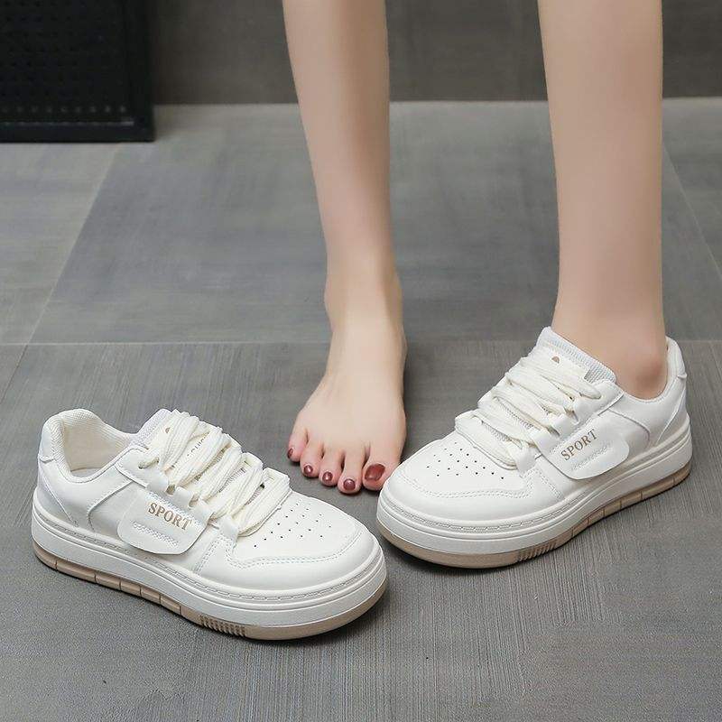 รองเท้าผ้าใบสตรีอินเทอร์เน็ตคนดังมีสายคาดรองเท้าสีขาวระบายอากาศได้สำหรับนักเรียนอเนกประสงค์สำหรับผู้หญิง2025ใหม่ฤดูใบไม้ร่วงพื้นหนา H