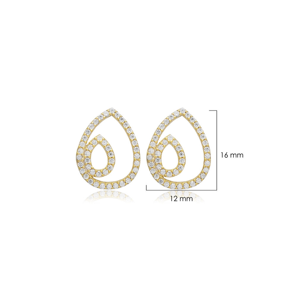 ต่างหูสตั๊ดหิน CZ รูปไข่แบบผสมผสานทำด้วยมือเงิน925เครื่องประดับคุณภาพแบบตุรกี