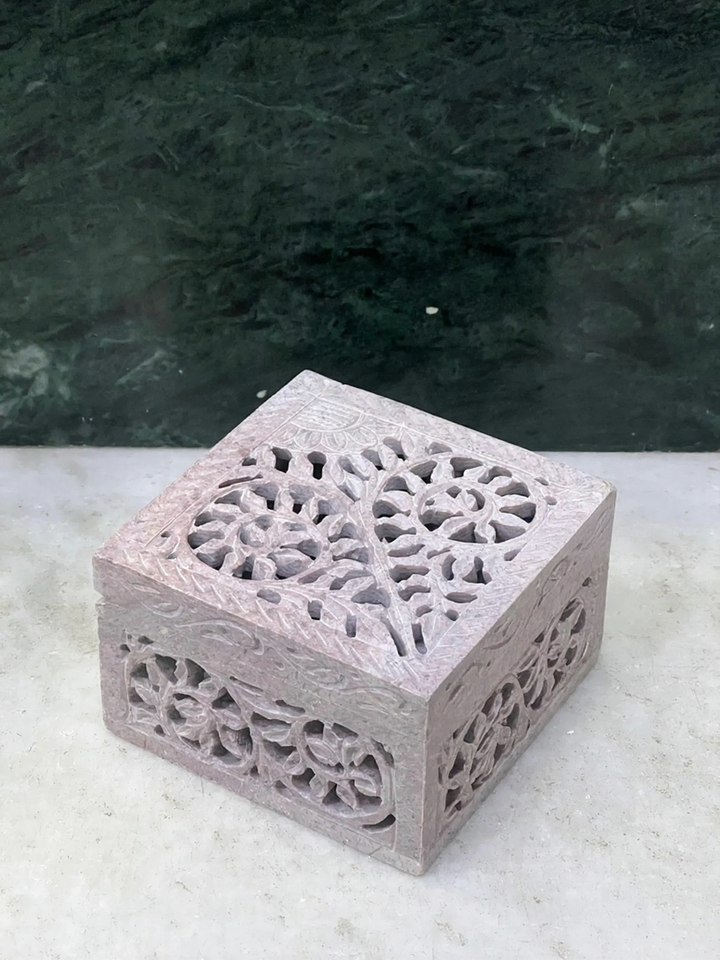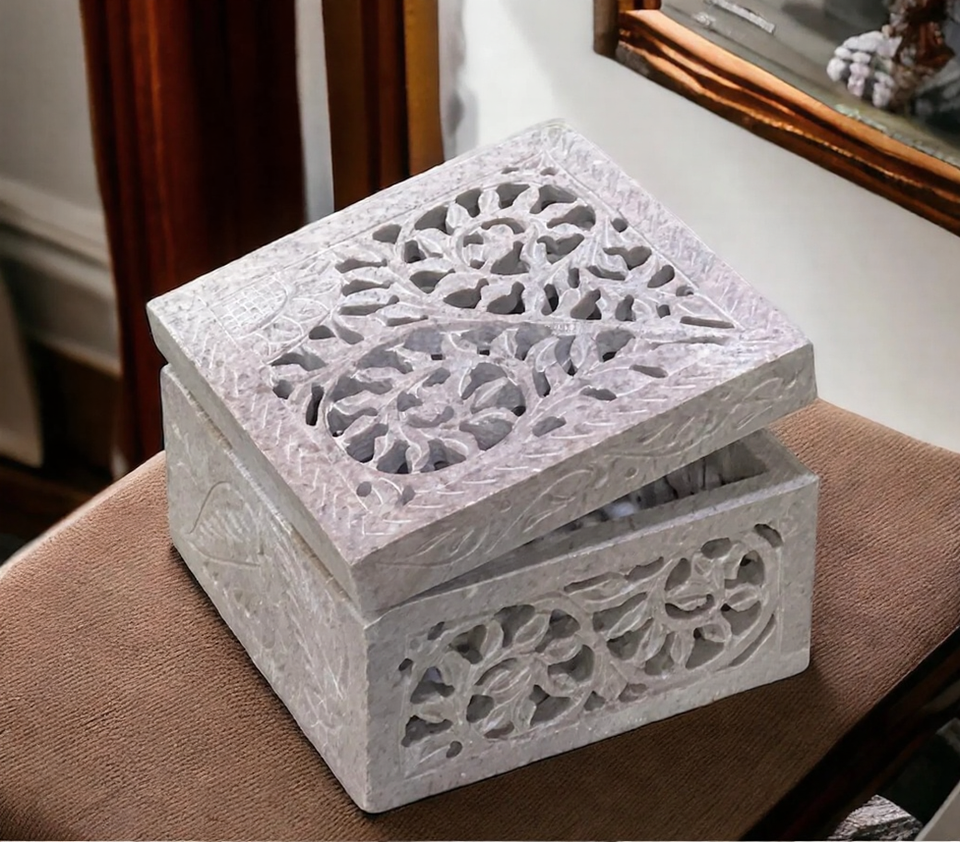 กล่องใส่เครื่องประดับทำจากหินสบู่แกะสลักด้วยมืออย่างประณีตสำหรับงานขนาดเล็ก