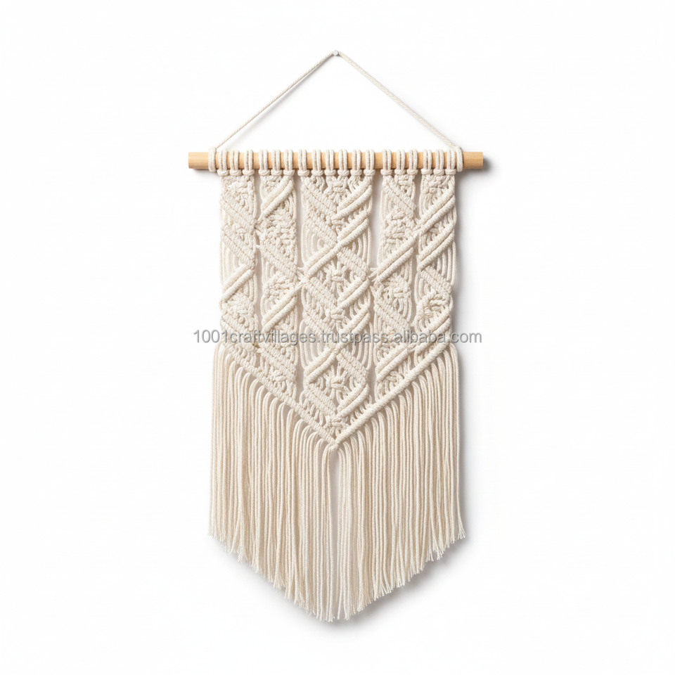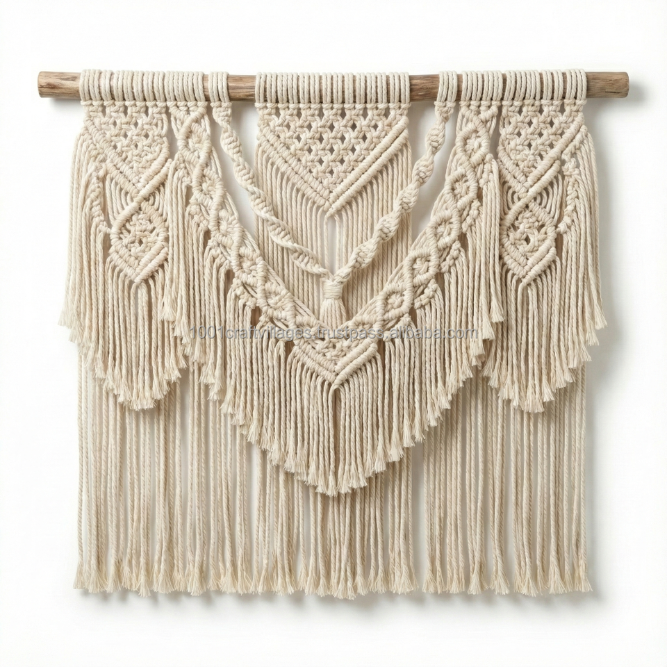 งานถักมาคราเม่ตกแต่งผนัง งานฝีมือมาคราเม่สำหรับตกแต่งสไตล์โมเดิร์น ผู้จัดจำหน่ายจำนวนมาก ผลิตภัณฑ์จากธรรมชาติ ยั่งยืน ประเทศเวียดนาม