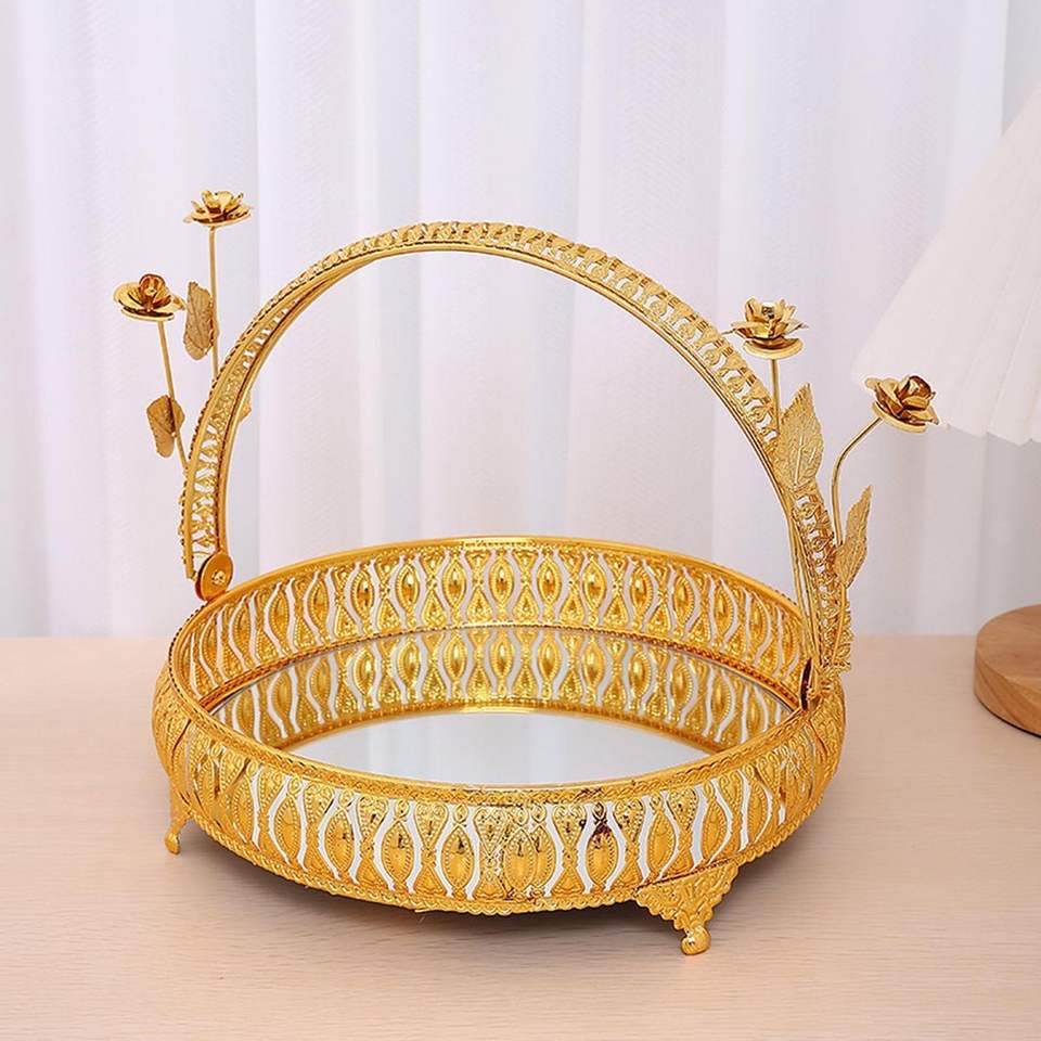 ถาดรอมฎอนโลหะที่ออกแบบอย่างประณีตพร้อมลวดลายศิลปะแบบอิสลามที่สมบูรณ์แบบสำหรับการแสดงผลเดือนรอมฎอนและวันอีด