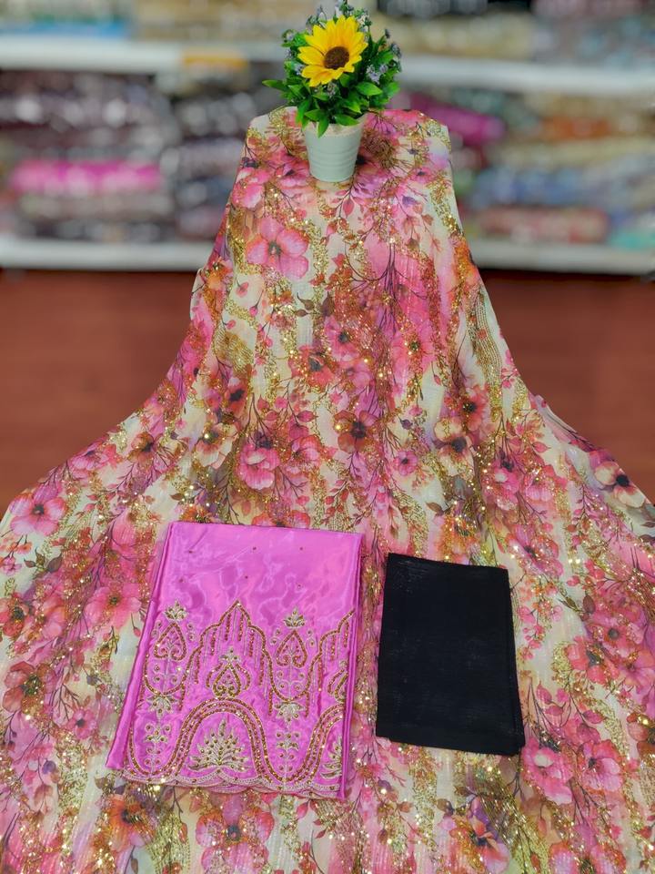 ขอแนะนำสินค้าใหม่ล่าสุดของเรา ผ้าดิรักประดับลูกปัดแบบโซมาเลีย ฟรานซาวี พร้อมงานปักเลื่อมสีเงินบนลายเรขาคณิต สำหรับชุดแต่งงาน