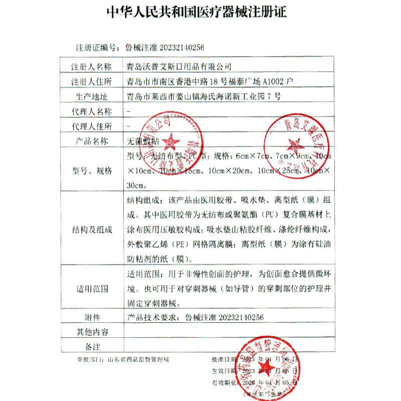 Drug (Medical Device) Approval Number:Shandong Medical Device Registration Certificate No. 20232140256