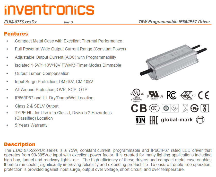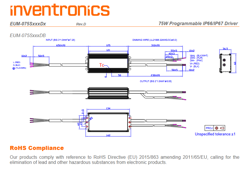 อายุการใช้งาน:100,000 ชั่วโมง @ อุณหภูมิเคส 70°ซี