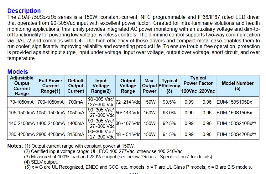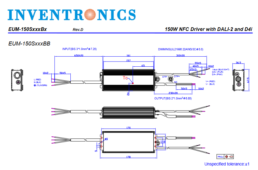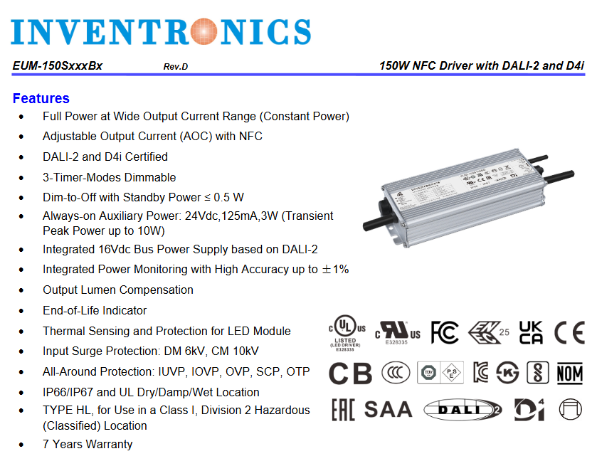 Inventronics DC18-214V EUM-150S105BB EUM-150S150BB EUM-150S420BB EUM-150S210BB ไดรเวอร์ไฟ LED 150W