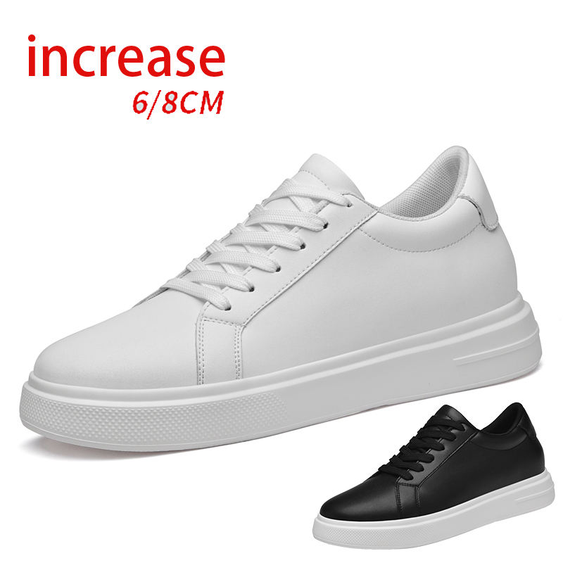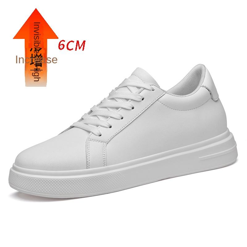 รองเท้าแฟชั่นผู้ชายทรงบอร์ด พื้นรองเท้า EVA หนังแท้ทั้งส่วนบน ความสูงเพิ่มแบบซ่อน 8 ซม. รุ่นโด๊คเลเยอร์สีขาว ทันสมัย