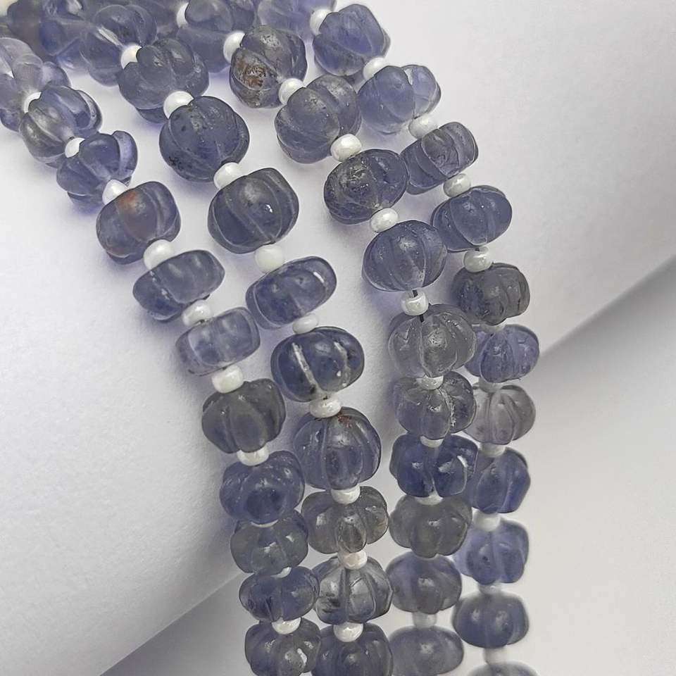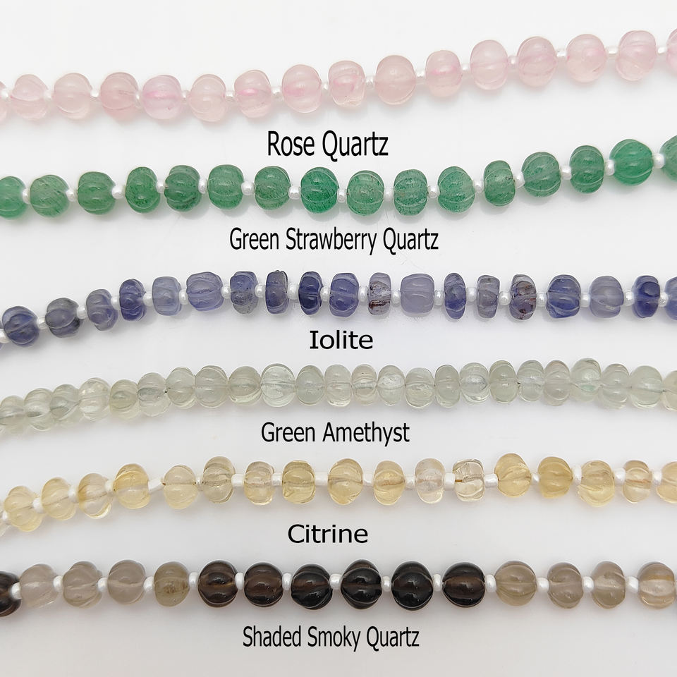 สายลูกปัดหินประดับลูกปัดฟักทองแกะสลักยาว8นิ้วจากอินเดีย