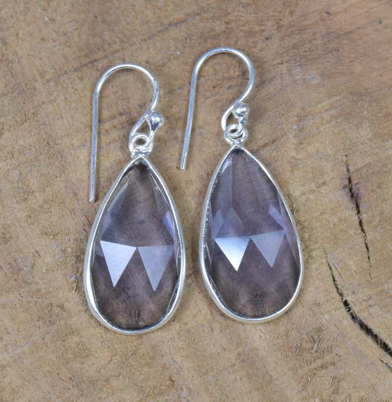 ต่างหูเงินแท้ประดับอิโอไลต์ควอตซ์ หินประจำเดือนธันวาคม งานฝีมือจากอัญมณีธรรมชาติ ของขวัญเครื่องประดับ