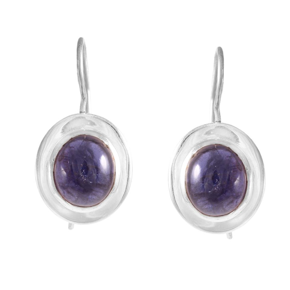 Iolite ต่างหูห้อยสีเงินแบบ925อัญมณีเหลี่ยมเพชรพลอยเครื่องประดับผู้หญิงแบบปรับได้ราคา