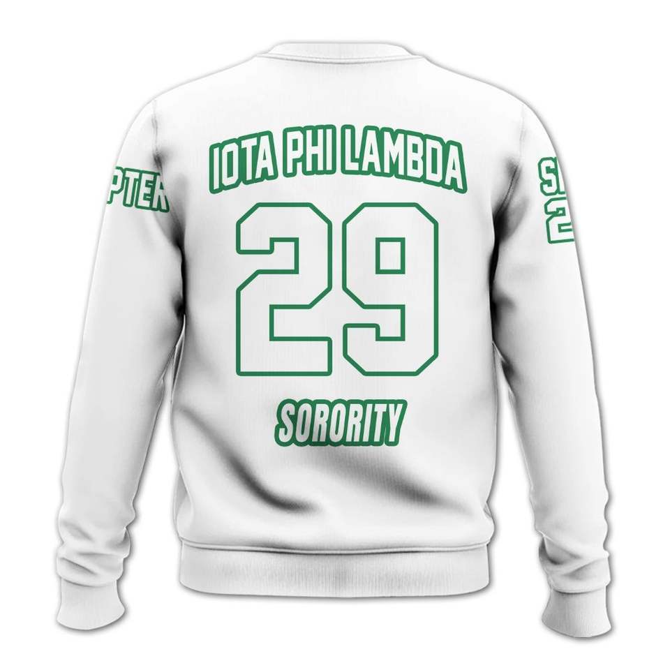 เสื้อสเวตเชิ้ต Iota Phi Lambda Custom Chapter สีขาว ลายตราสัญลักษณ์สมาคมนักศึกษากรีก ตั้งแต่ปี 1929 สำหรับผู้หญิง