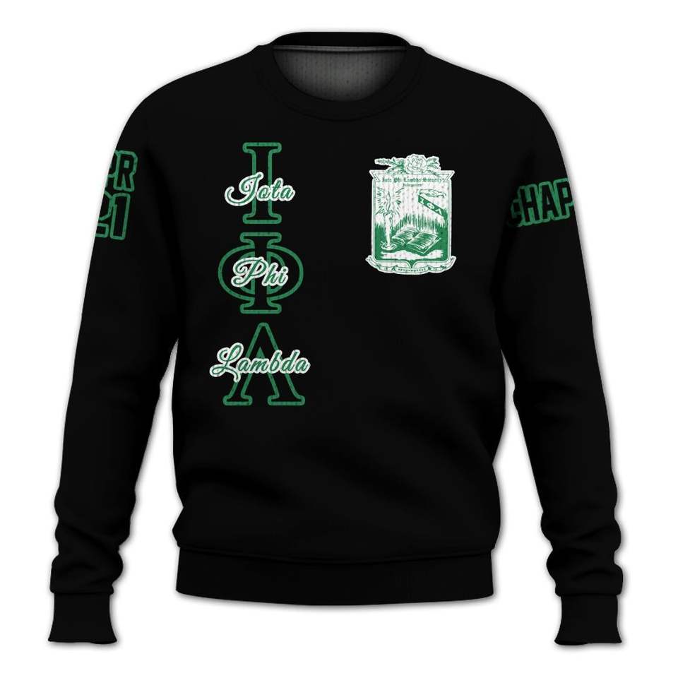 เสื้อแจ็คเก็ตวาร์ซิตี้สีดำแบบกำหนดเองของ Iota Phi Lambda เสื้อสเวตเตอร์ถักของชมรม Iota Phi Lambda