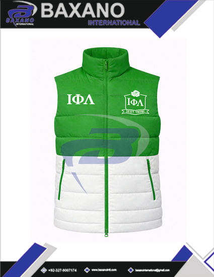 เสื้อกั๊กพัฟเฟอร์พรีเมียม Iota Phi Lambda IPL Sorority แบบเย็บติดกัน คุณภาพสูง เสื้อกั๊กบุนวมแบบวาร์ซิตี้ เสื้อกั๊กผู้หญิงแบบกันหนาว