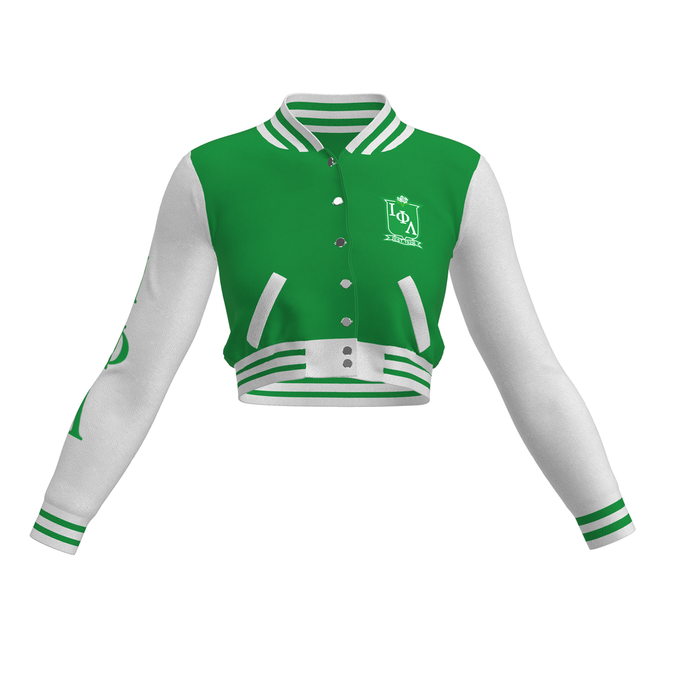 เสื้อครอปแบบแข็งลาย Iota phi Lambda พร้อมกระดุมตกแต่งรอบเอวธรรมชาติที่เป็นมิตรกับสิ่งแวดล้อม