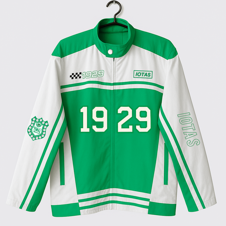 Iota phi เสื้อแข่งผ้าฝ้ายทอลายทแยงสำหรับผู้หญิงแจ็คเก็ตนักแข่งรถปรับแต่งได้
