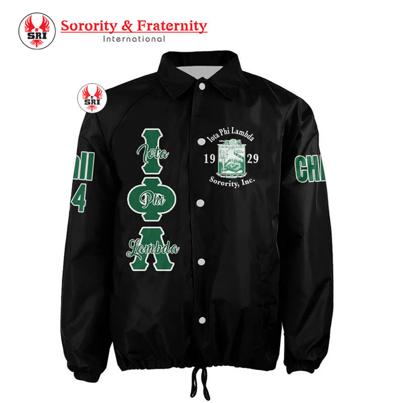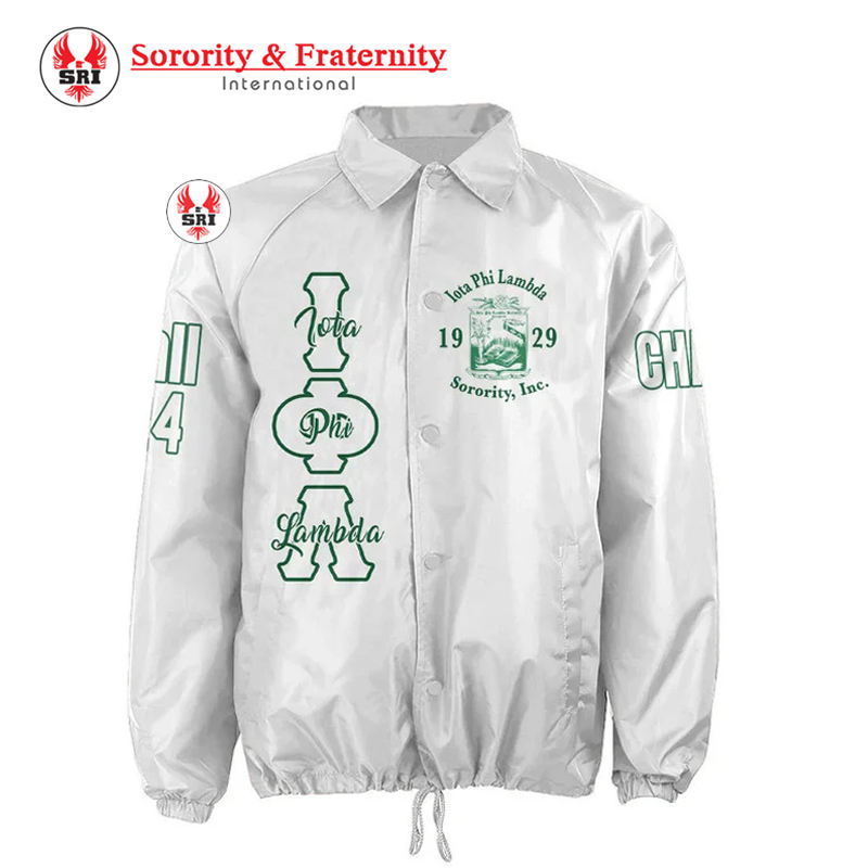 เสื้อแจ็คเก็ตโค้ชหญิงปักลายสมาคมนักเรียนหญิงอิโอต้า ฟาย แลมบ์ดา | เสื้อแจ็คเก็ตผ้าโพลีเอสเตอร์บุไนลอนปักลายสำหรับสตรี