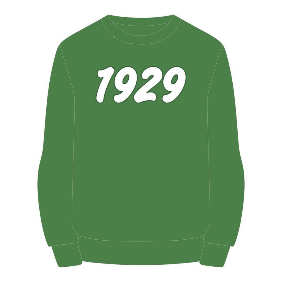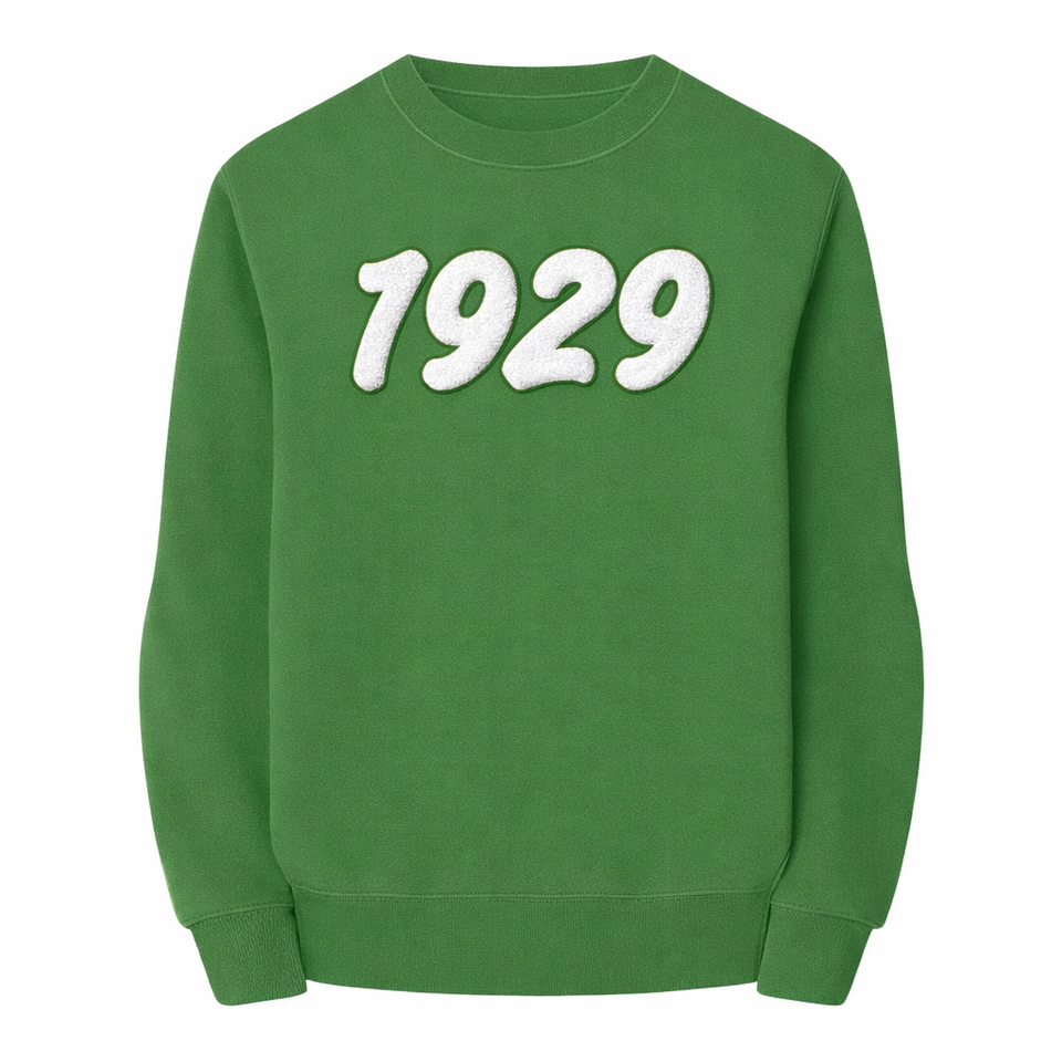 เสื้อสเวตเชิ้ตสีเขียวมรกตของชมรมนักเรียนหญิงอิโอต้า ฟิ แลมบ์ดา พร้อมตัวอักษรภาษากรีก ปีก่อตั้ง 1929 เสื้อสวมหัวลำลองสำหรับผู้หญิง คอกลม