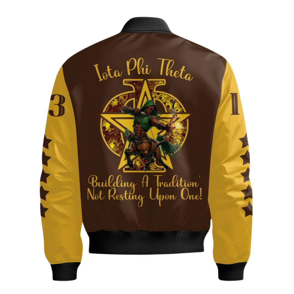 Iota phi theta เสื้อแจ็คเก็ตซาตินปักลายสำหรับผู้ชาย, เสื้อแจ็คเก็ตผ้าซาตินเงาสำหรับ1963ทีมตัวแทนทิ้งระเบิดวิทยาลัยกรีก