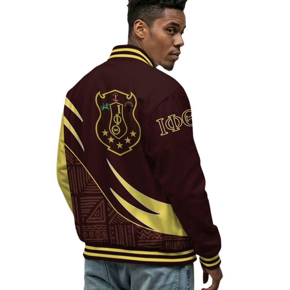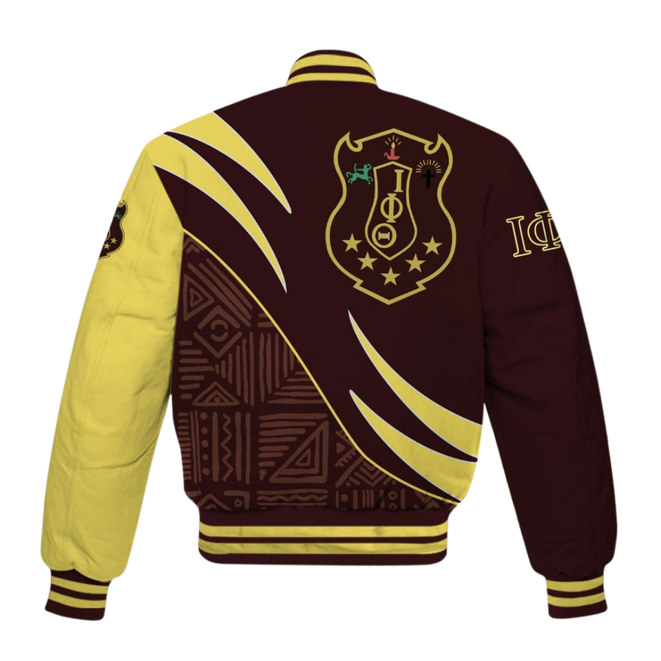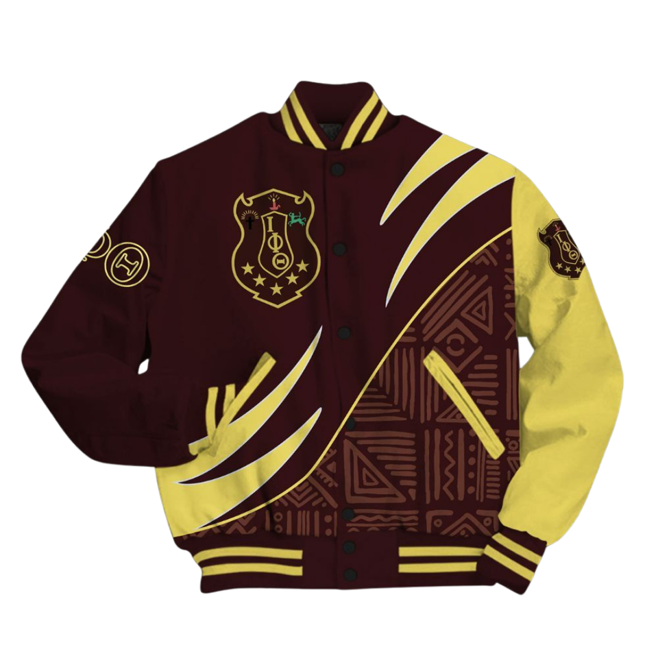 Iota Phi แจ็คเก็ต1963สไตล์คลาสสิก, แจ็คเก็ตตัวแทนมหาวิทยาลัยสีน้ำตาลทองเสื้อผ้าพี่น้องชาวกรีกเครื่องแต่งกายมรดก