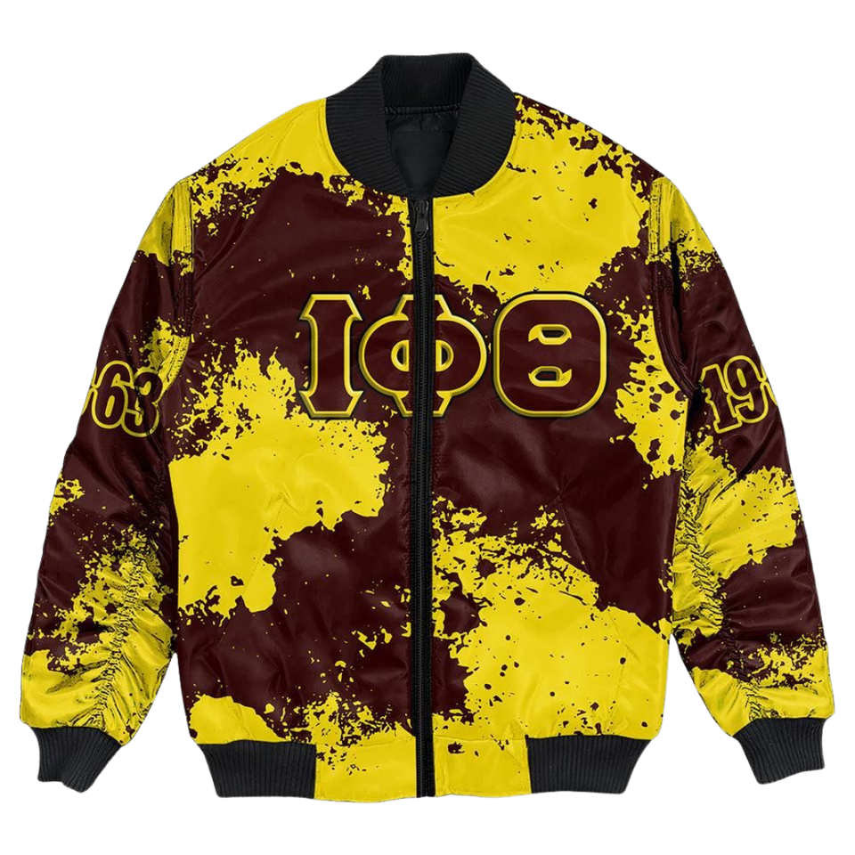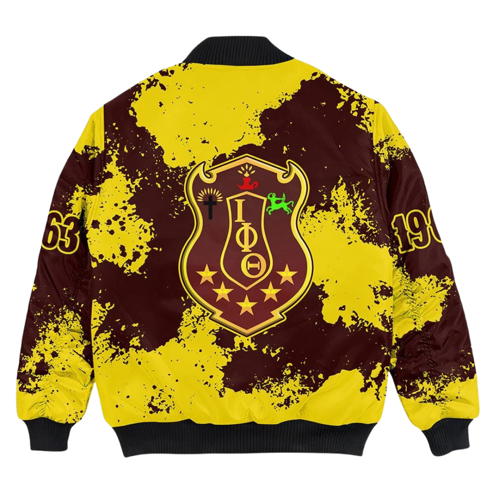 Iota phi เสื้อ1963ผ้าซาตินพรีเมี่ยม, เสื้อแจ็คเก็ตบอมเบอร์ทีมตัวแทนประเทศกรีกปักเครื่องแต่งกายของนักศึกษาวิทยาลัย