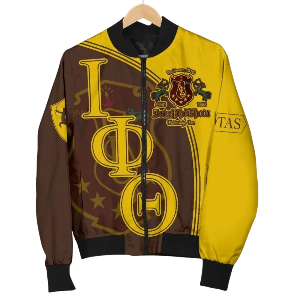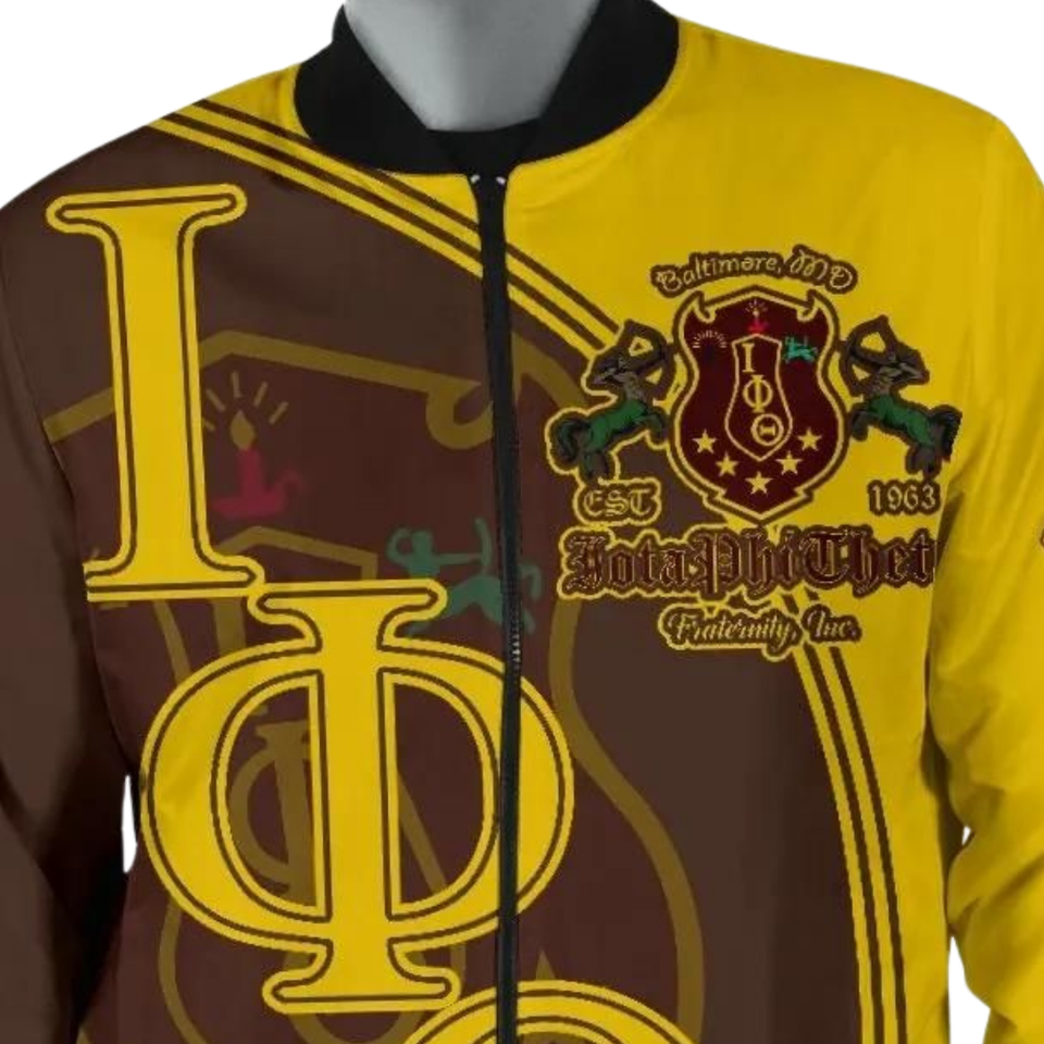 Iota phi theta 1963เสื้อแจ็คเก็ตผ้าซาตินทีมตัวแทนชาวกรีกนักศึกษาวิทยาลัยปักลายบอมเบอร์แบบพรีเมียม