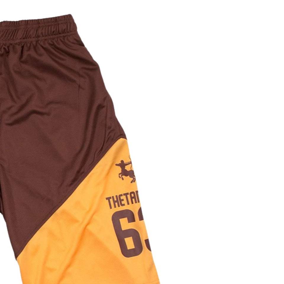 Iota phi theta 63กางเกงขาสั้นบาสเก็ตบอลสีน้ำตาลและสีทองกางเกงตาข่ายออกกำลังกายสำหรับสมาชิก