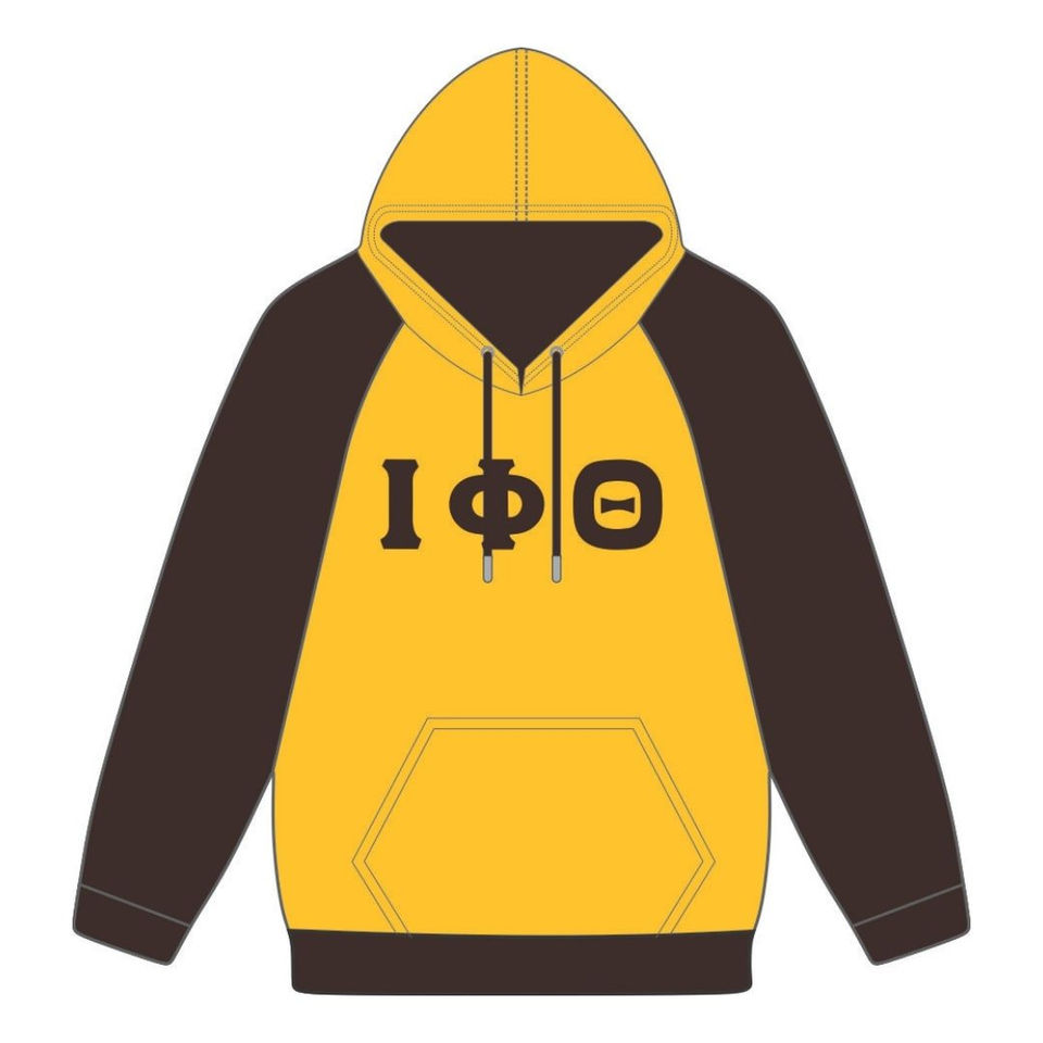 Iota phi theta เสื้อมีฮู้ดแขนแร็กแลนเสื้อสวมหัวสีทองเสื้อผ้าคอตตอนผสมลายพี่น้องกรีกออกแบบได้ตามต้องการจาก Divine hbcu