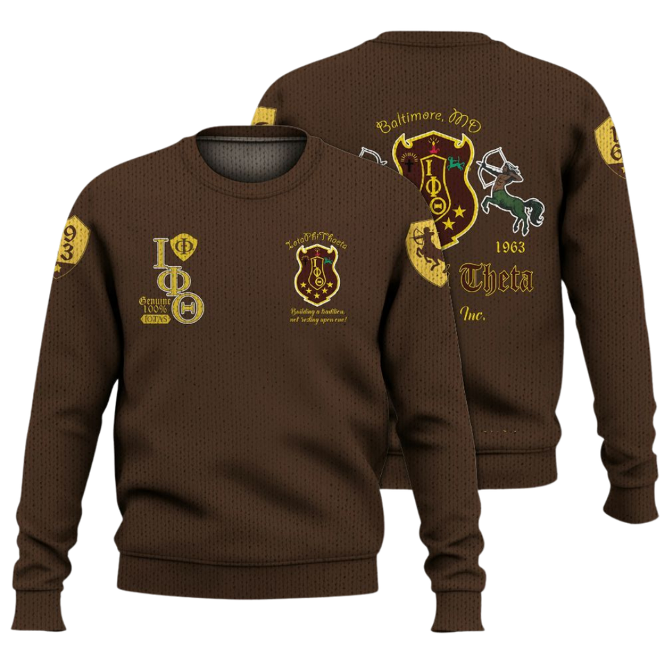 เสื้อสเวตเตอร์ถักอะคริลิคแบบสวมหัวมีตัวอักษรจาก iota phi theta Greek สำหรับ1963เสื้อผ้ากรีก