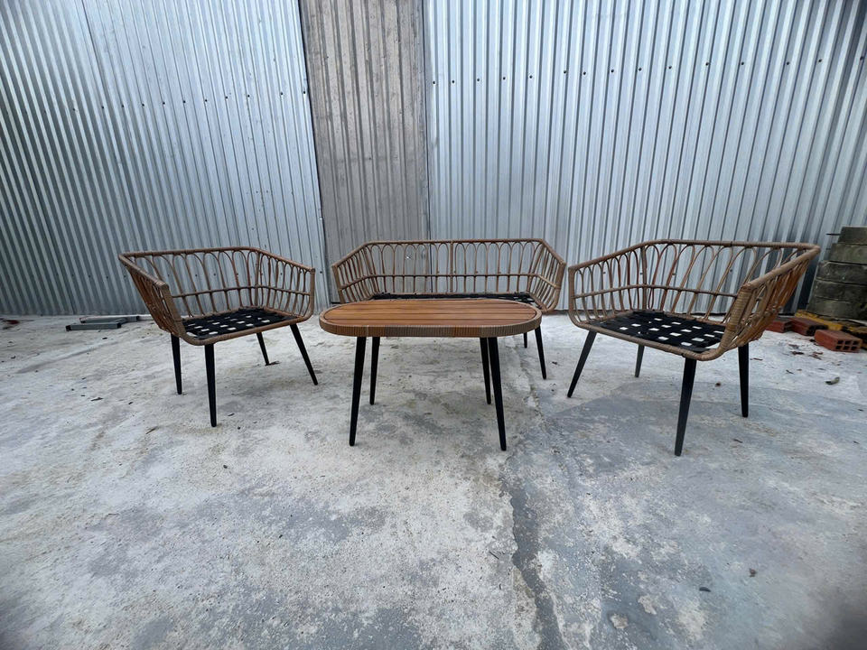 ชุดที่นั่งกลางแจ้งทำจากเชือก irati ชุดเชือกเฟอร์นิเจอร์ลานไม้สักดีไซน์ทันสมัยและกันน้ำได้หรูหรา