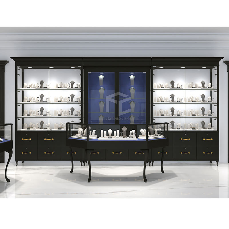 ตู้โชว์เครื่องประดับดีไซน์เฟอร์นิเจอร์สไตล์วินเทจสีดำแบบไอริช ยี่ห้อ PENBO ขนาดและสีตามสั่ง รับผลิตแบบ ODM