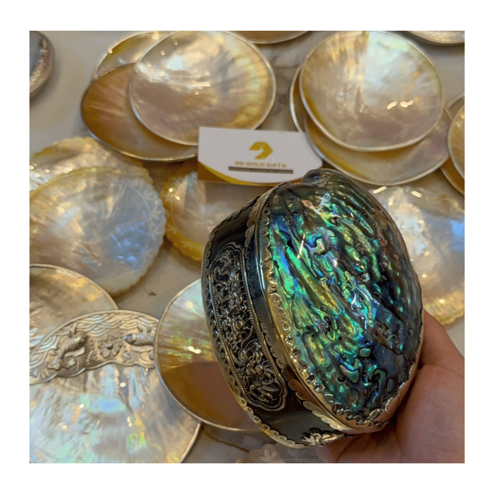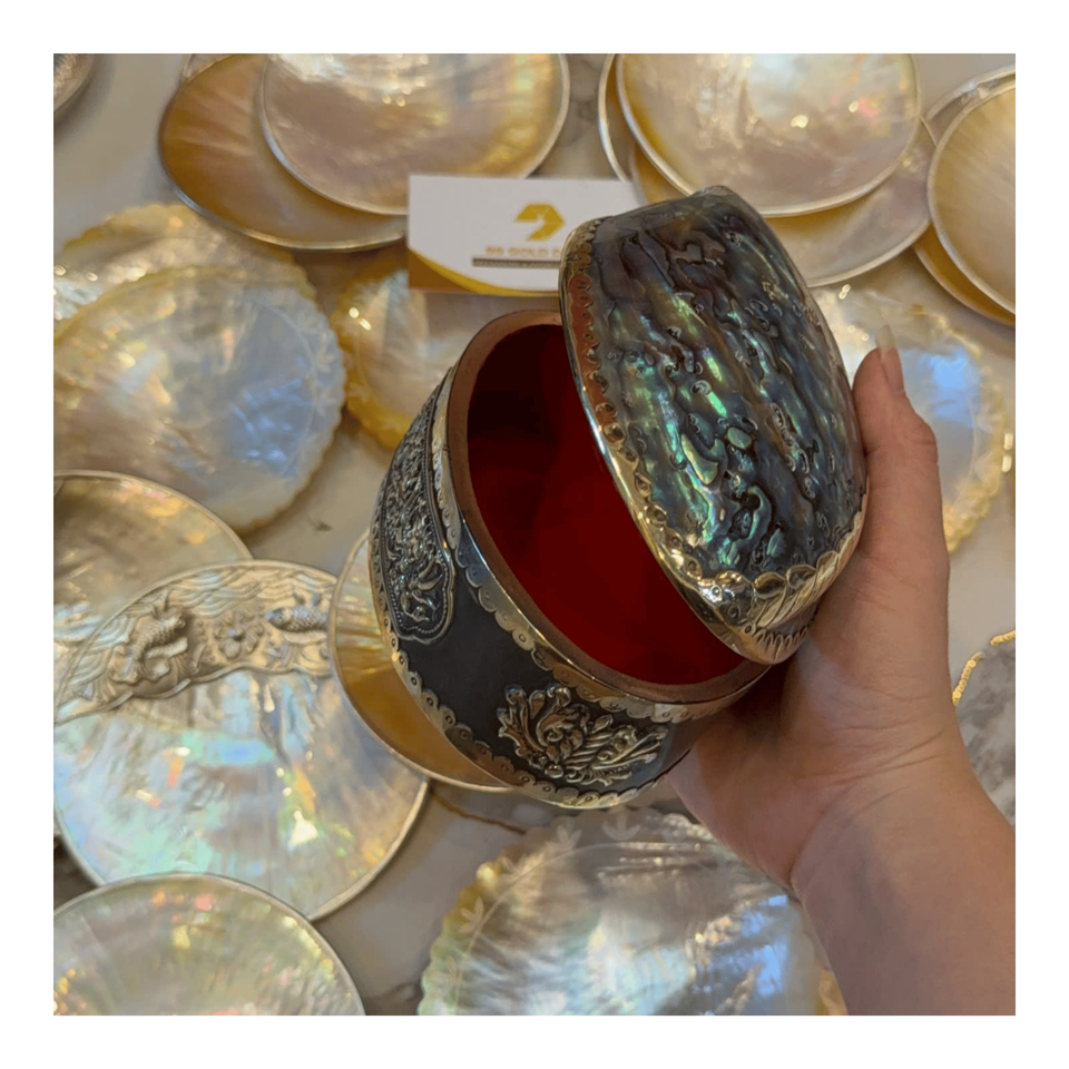 กล่องเครื่องประดับเปลือกหอยมุกสีรุ้ง ทำด้วยมือ ประดับด้วยมุกเปลือกหอยและกรอบไม้ สำหรับเก็บเครื่องประดับและของตกแต่ง ผลิตในเวียดนาม