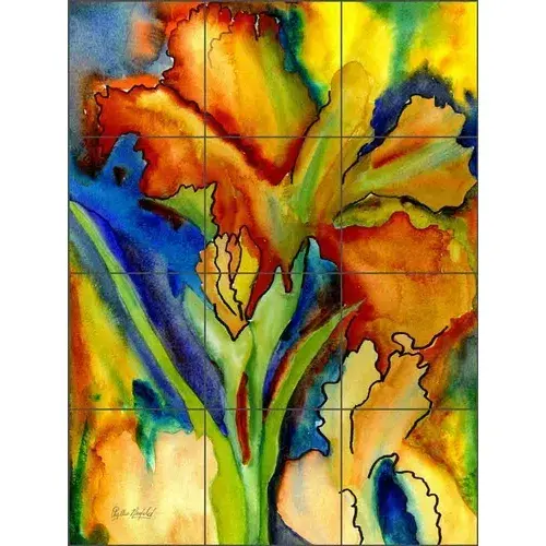 ภาพจิตรกรรมฝาผนังเซรามิกไอริส PNA021ลายดอกไม้ศิลปะแอบสแตรก
