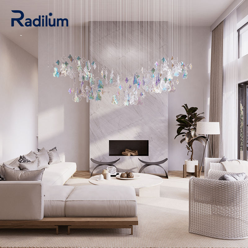 โคมไฟระย้ากลุ่มดอกไม้สีรุ้งไอริสโรงงานหรูหรารับประทานอาหารโรงแรมล็อบบี้ออกแบบได้ตามต้องการ