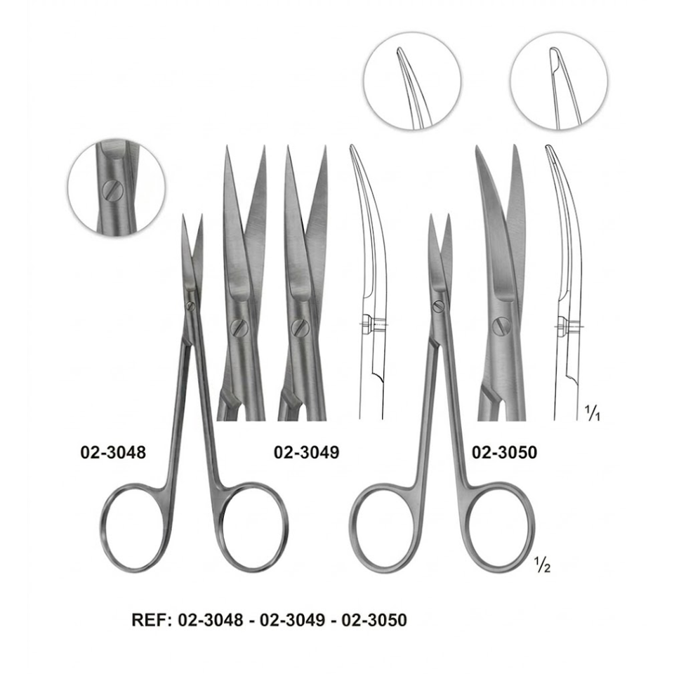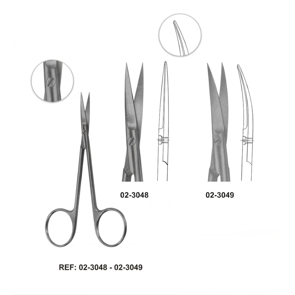 กรรไกรตัดเยื่อแก้วตา 115 มม. สแตนเลสสตีล เครื่องมือผ่าตัดขนาดเล็ก แบบตรงและโค้ง สำหรับจักษุวิทยาและทันตกรรม เกรดสำหรับการผ่าตัด
