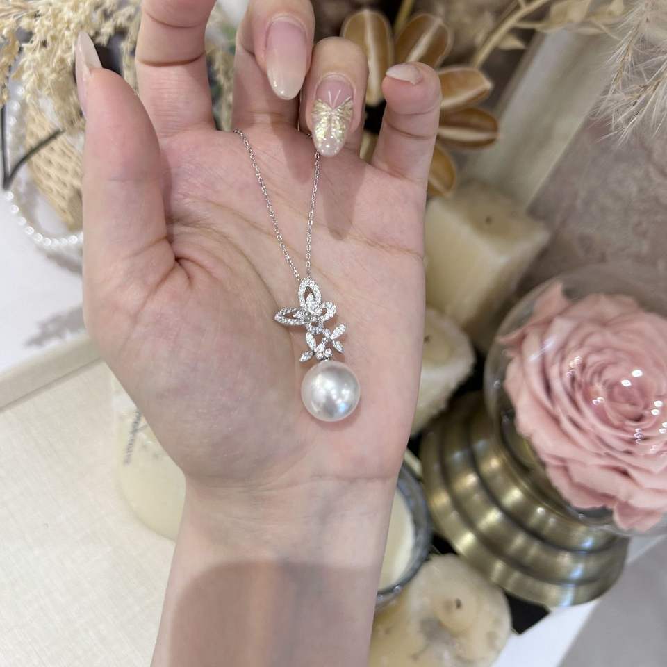 สร้อยคอไข่มุกแท้สีขาวออสเตรเลียเม็ดใหญ่ แสงเย็น เงินแท้ S925 ยี่ห้อไอริช กรีนฟิลด์ สำหรับผู้หญิง ไข่มุกชิเจีย
