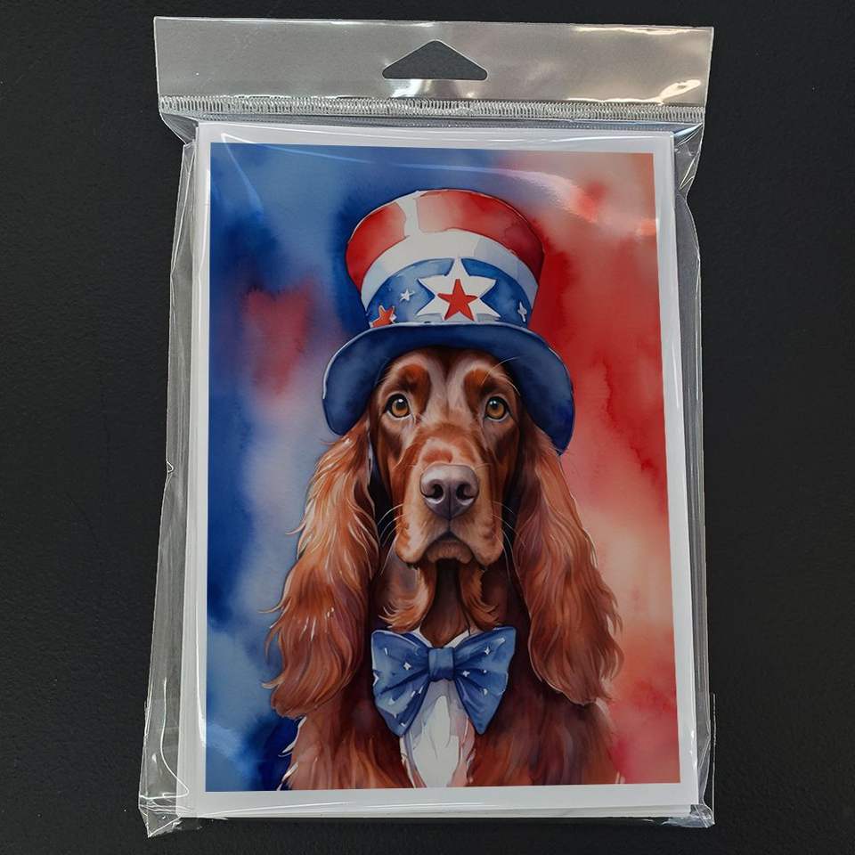 ไอริชเซ็ตเตอร์รักชาติอเมริกันแปลกๆ A7โน๊ตการ์ดเปล่าแพ็ค8ซอง5x7ขนาดการ์ดอวยพร