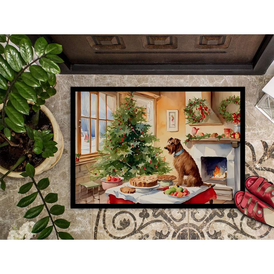 Irish Terrier Christmas Cookie-Themed Doormat Non-Slip Indoor/Outdoor 18H X 27W Rug Washable Low Pile for Entryway