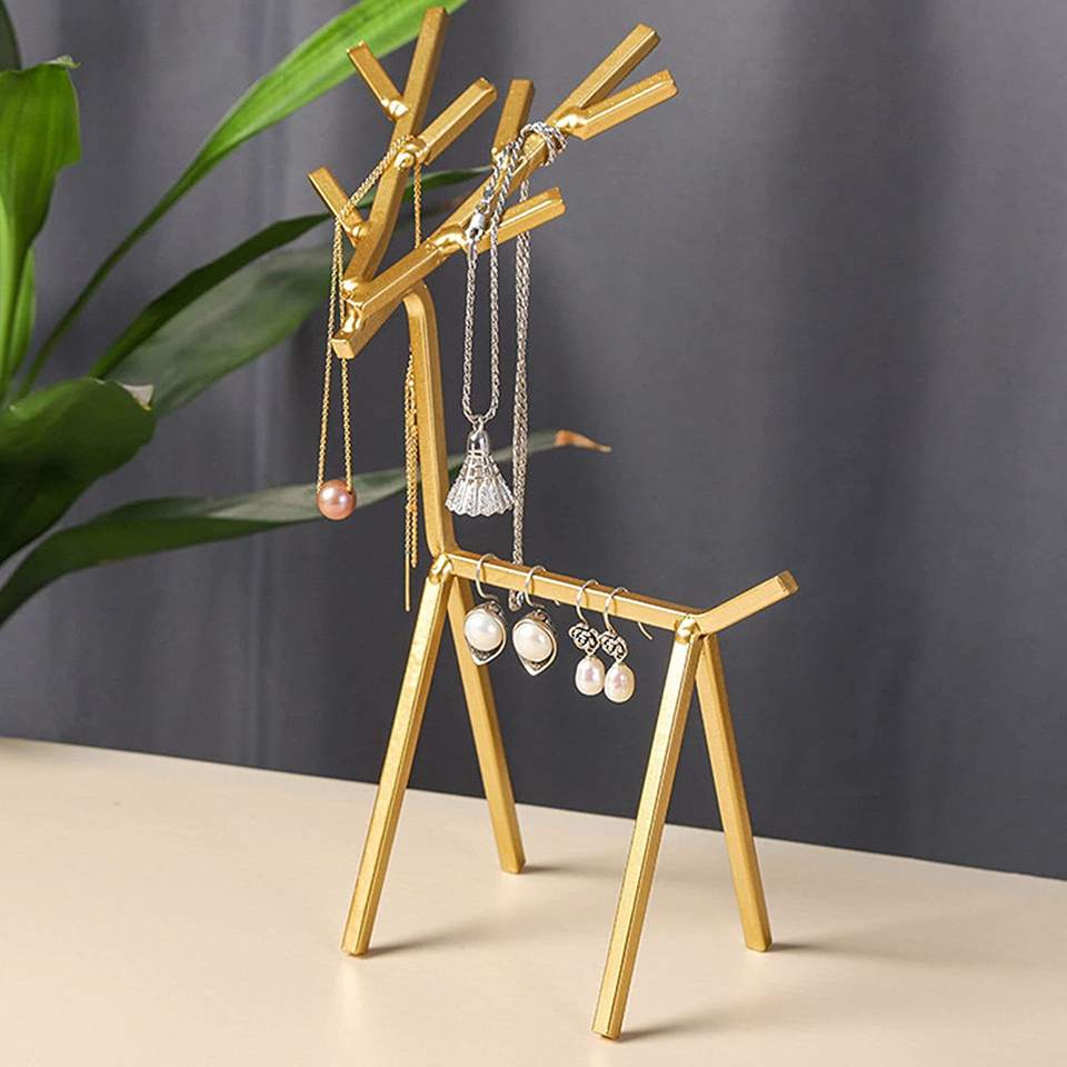 ชั้นวางเครื่องประดับรูปกวางทรงเรขาคณิตทำจากเหล็กชั้นวางของสร้างสรรค์ทำจากเฟอร์นิเจอร์ตั้งโต๊ะต่างหูสร้อยคอของสะสม