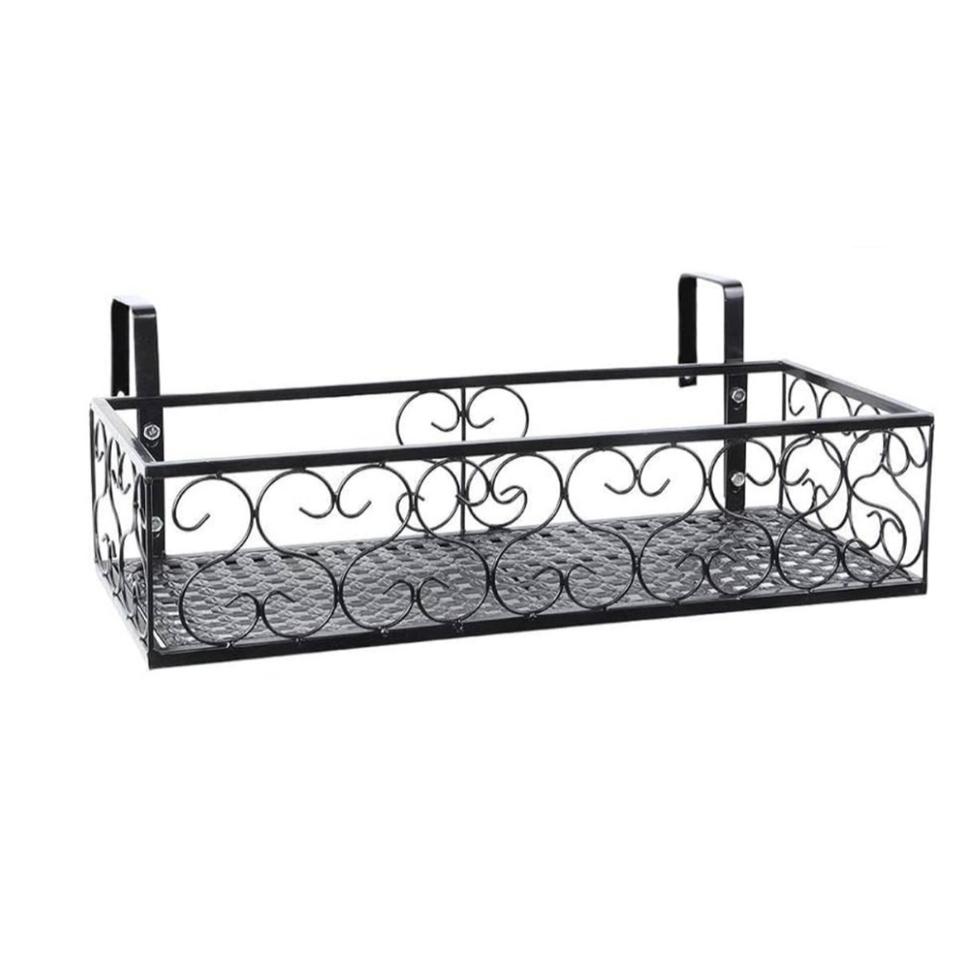 ชั้นวางกระถางต้นไม้แบบแขวนระเบียงเหล็กพร้อมตะขอ กล่องปลูกต้นไม้โลหะทรงสี่เหลี่ยมสำหรับวางหน้าต่าง ที่วางต้นไม้สำหรับสวนกลางแจ้ง ที่วางดอกไม้
