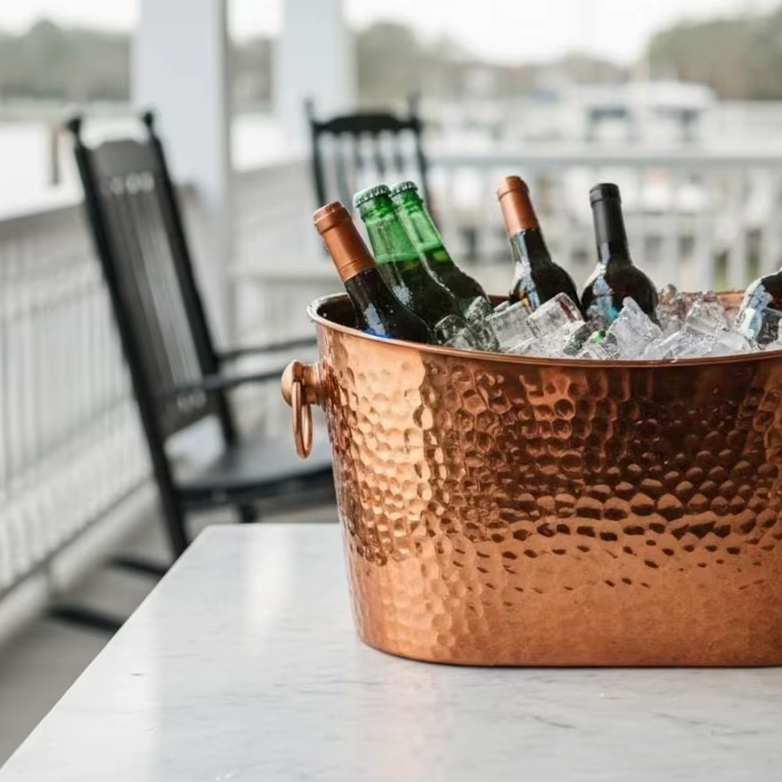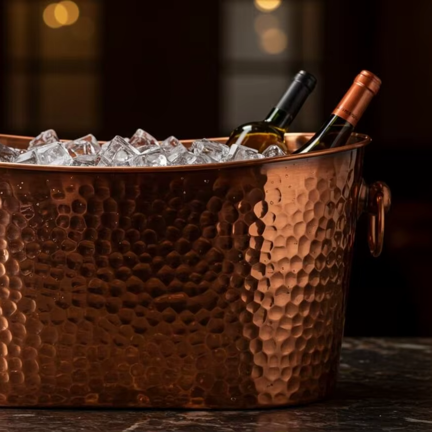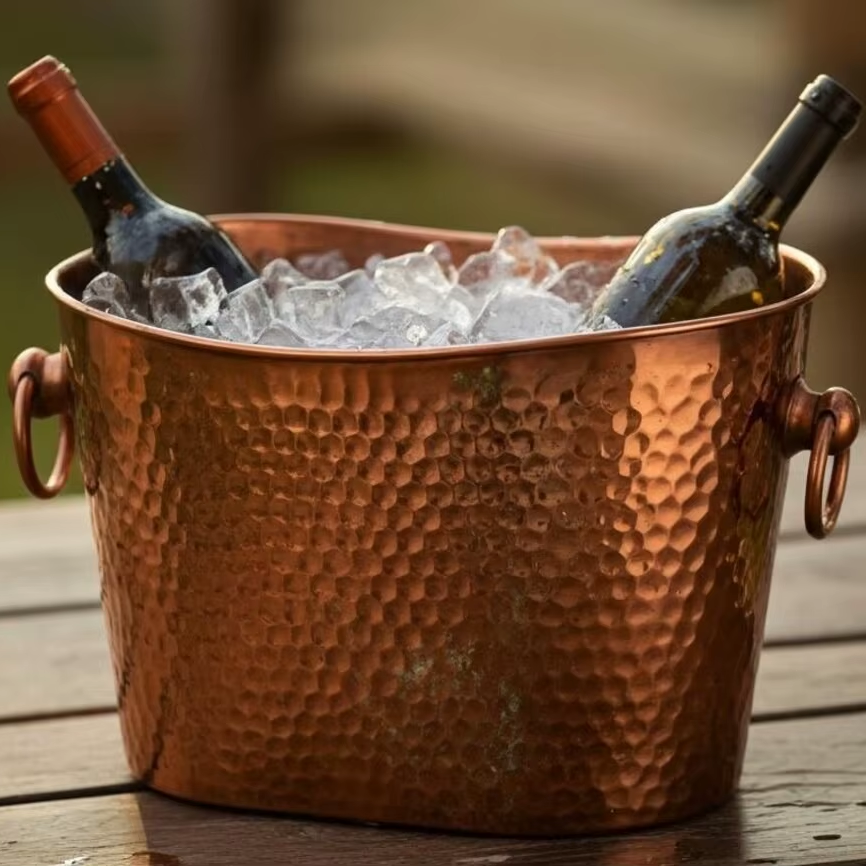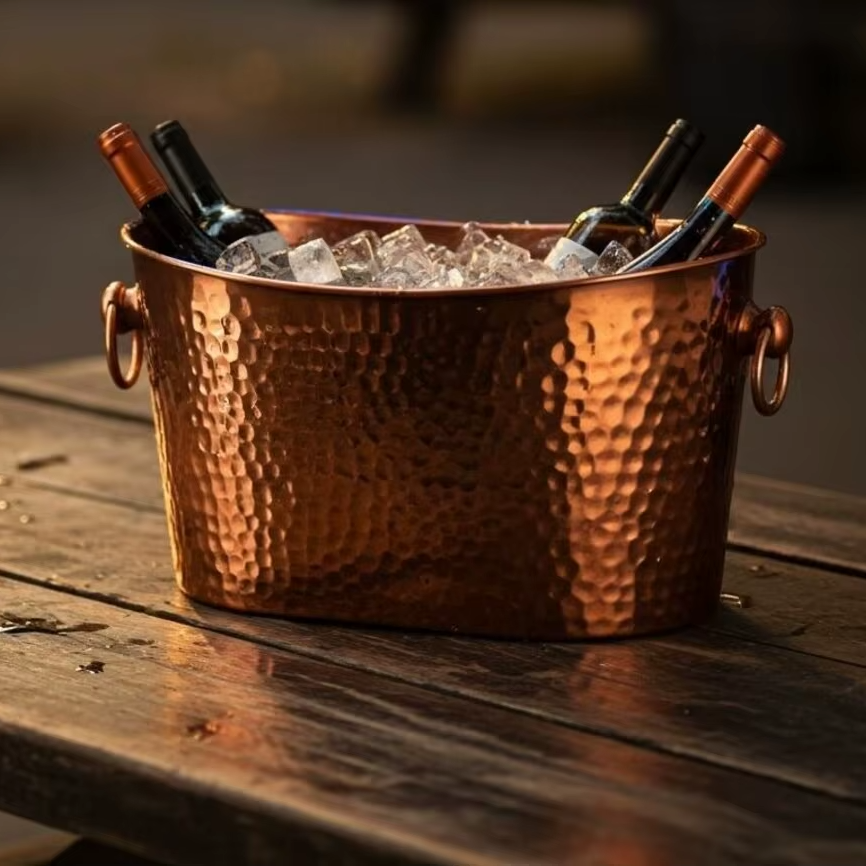 ถังน้ำแข็งเหล็กสำหรับเบียร์ ไวน์ เครื่องดื่ม ดีไซน์ดั้งเดิม งานแฮนด์เมด สไตล์โบราณ สำหรับงานปาร์ตี้