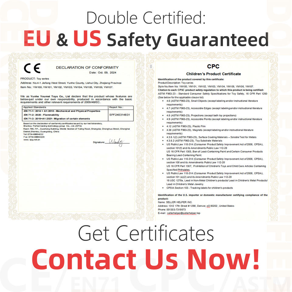 ใบรับรอง:CE, CPC, EN 71, ASTM, ISO 9001, การปรับแต่งใบรับรอง