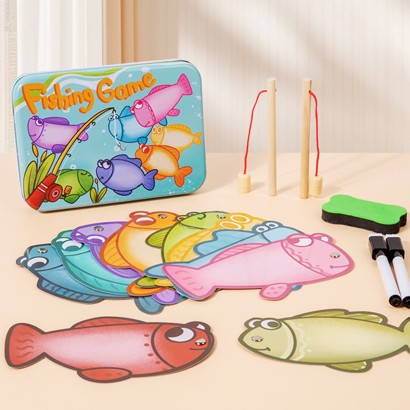 การ์ดสอนภาษาอังกฤษแบบกล่องเหล็ก สำหรับการเรียนรู้การตกปลา แบบลบเขียนได้ เหมาะสำหรับการเรียนรู้ของพ่อแม่และลูก เกมตกปลา ของเล่นเด็ก
