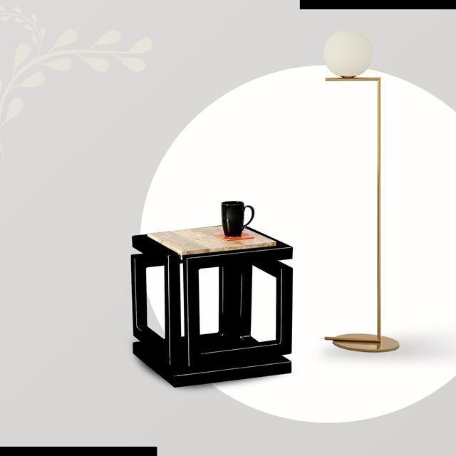 โต๊ะเหล็กทองเหลืองพร้อมไม้ด้านบน (สีดำ)
