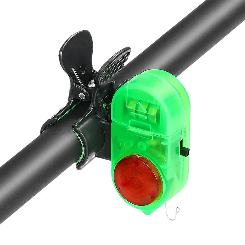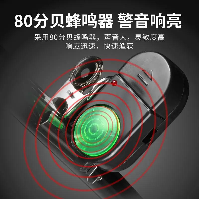 กระดิ่งเตือนแบบหนีบเหล็กสำหรับคันเบ็ดตกปลาทะเล ใช้พลังงานแบตเตอรี่ ผลิตจากพลาสติก พร้อมเซ็นเซอร์ป้องกันการตก ระบบแจ้งเตือนสำหรับตกปลาหินในทะเล