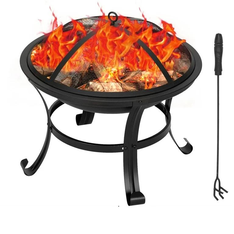 เตาไฟเหล็กดัดสำหรับตกแต่งลานสวนกลางแจ้งเตาไฟสีดำสำเร็จแบบหนาทำด้วยมือ