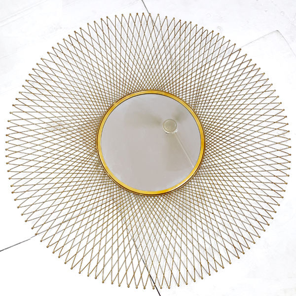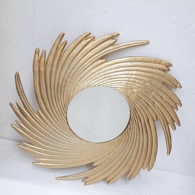 กระจกเหล็กทรงกลมสีทองติดผนังสไตล์แฟนซีงานแฮนด์เมดใช้ตกแต่งผนังบ้านหรูหรา
