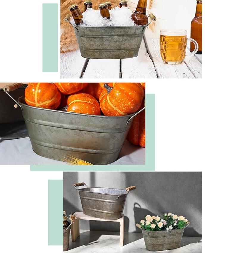 Iron Oval Planter with Handles Set Of 3 Rustic Farmhouse Flower vase With Drain Holes Farmhouse Vintage Style For Decoration