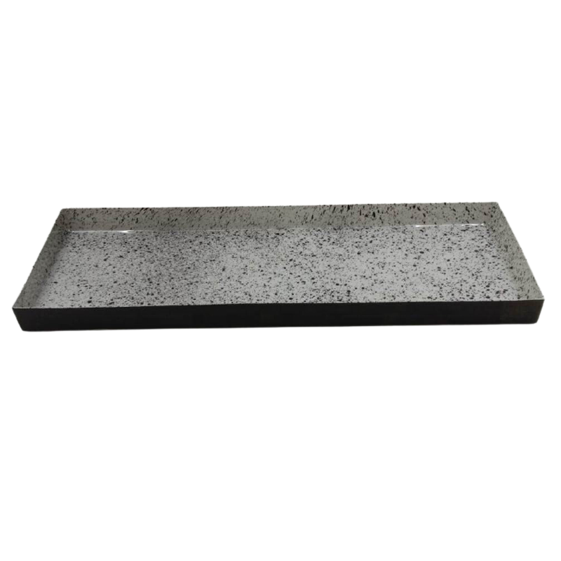 ถาดเหล็กทรงสี่เหลี่ยมผืนผ้าจานเคลือบสีขาวและเคลือบสีทองเหลืองสำหรับเสิร์ฟอาหารและตกแต่งในโรงแรม