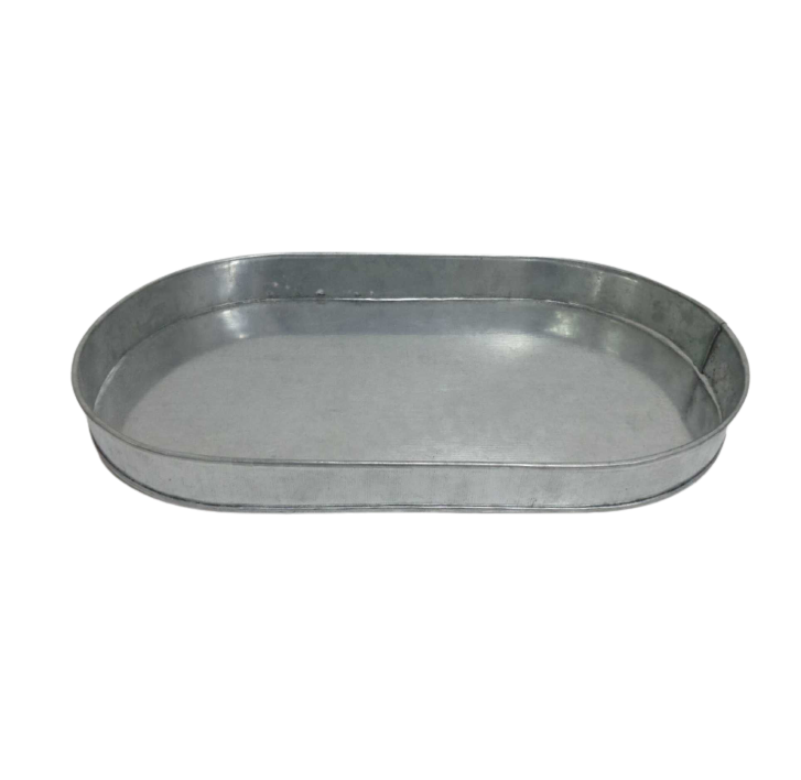 ถาดเหล็กใส่อาหารทรงรีสีเงินสำหรับร้านอาหารและของตกแต่งบนโต๊ะจำนวนมาก